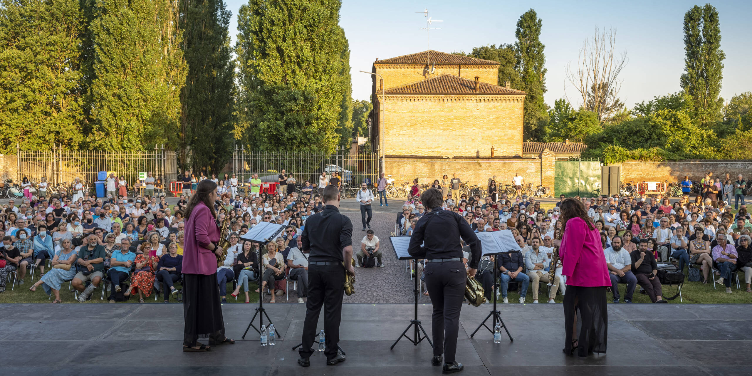 Music was thus the highlight of the programming of the Pink Night in Ferrara, which also saw the weekend’s extraordinary evening openings of the Estense Castle and Porta Paola, the heart of the wall system in the southern portion, illuminated in the classic pink color for the occasion. This morning to greet the “Dawn of Sounds”-at 6 a.m. in the Certosa garden-was the Frescobaldi Conservatory saxophone quartet (Serena Tarozzo, Camilla Bottin, Enrico Barin and Fabio Lucarini) who, with the backdrop of the rising sun, played a repertoire that ranged from Ennio Morricone’s “Once Upon a Time in the West” to Astor Piazzolla’s “Libertango. And then other great classics such as Queen’s “Bohemian Rhapsody,” George Gershwin’s “Summertime,” Scott Joplin’s “Maple Leaf Rag,” the soundtracks of famous movies such as The Blues Brothers, The Wizard of Oz, and other very famous, very topical songs such as Ed Sheeran’s “Shape of You.” At the end ovation of the audience, welcomed with an encore (just on the notes of Ed Sheeran) by the young saxophonists, all under 30. “After last year’s experience, this year we doubled the musical events in Certosa, to enhance this magnificent place, in the garden of the city’s largest open-air museum,” stressed Councillor Matteo Fornasini. “The large public attendance recorded yesterday and today,” he added, “is confirmation of the appreciation and attractiveness of the initiatives carried out, in a vast team effort, for which I thank all those who contributed.