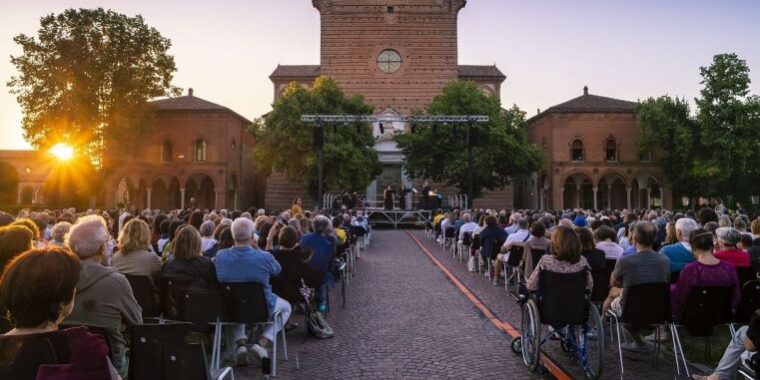 Interprete del repertorio del Maestro, davanti a circa 1200 persone (esauriti i mille posti a sedere di fronte al tempio di San Cristoforo), è stato il Conservatorio Frescobaldi, in uno spettacolo introdotto dall’ assessore Matteo Fornasini e dal presidente di Ferrara Tua Luca Cimarelli.
